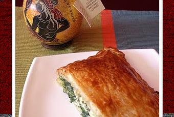 Al usar el hojaldre ponemos una lámina como base, extendemos el relleno de espinacas y queso y cubrimos con otra lámina, se van doblando los bordes remetiendo hacia dentro y con un cuchillo marcar 6 cuadrados.*Si usamos la pasta filo derretir la mantequilla y usar un poco para engrasar una fuente refractaria de unos 30x20 cm. Partir las láminas de pasta filo a la mitad a lo ancho. Coger una lámina y forrar la fuente con ella, pintar con mantequilla y poner otra mitad de lámina, así sucesivamente con toda la mitad de láminas. Extender el relleno y cubrir con el resto de láminas untadas de mantequilla.