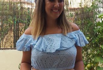 En primer lugar, un top en azul bebé, un color muy tendencia esta temporada. Es perfecto para llevar durante el día como en momentos más especiales, dependiendo de cómo se combine.