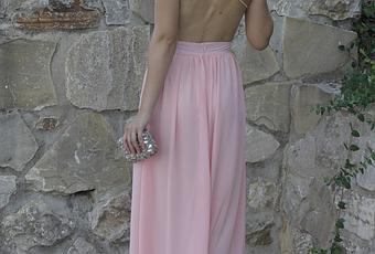 Good morning lovers! today I start September with party outfit. As you know on saturday I had a very special wedding. One night surrounded by friends, laughter and funny moments, for this I chose this original pale pink long dress from She Inside with beautiful back. Simple headband in gold and shiny clutch. To contrast with dress color I chose brown and bronze make-up, updo hair for chic touch. Hope you like! Happy week girlsxoxo