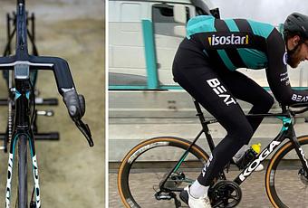 El especialista aeronáutico holandés Speeco ha llevado esa idea al siguiente nivel con su nuevo manillar y potencia integrados de fibra de carbono de una pieza Speeco ABB (Aero Breakway Bar), en colaboración con Roompot Charles, que anteriormente solía correr con manillares de pista japoneses de 32 cm de ancho.