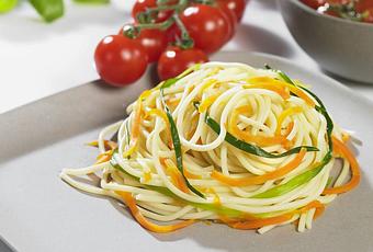 - Corta rodajas de vegetales y futas en forma de fideo y espiral