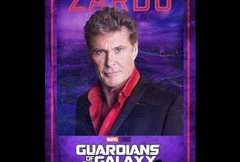 Además del vídeo, también tenemos un póster específico de la película protagonizado por David Hasselhoff, que tiene un cameo en la película cuando Ego adopta brevemente su forma en un intento de convencer a Star-Lord para que se una a él. En el póster aparece con el nombre de Zardu porque Gamora pronuncia mal su nombre en la película, llamándole “Zardu Hasslefrau”.