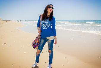 Hi loves! Greetings from my lovely beach! A few days ago we went for a walk and I took happens to make some picks, a Sport look very comfy and casual, is the best for spring days . I really wanted to release my sweatshirt from Franklyn and Marshall and did not see a better time , with the sea in the background in a blue and white look with jeans you saw the other day that I drew up my boy. It's a simple look , comfortable, perfect to wear it this holiday, with my favorite converse sneakers and my lovely and funny bag from Wayuu Bags