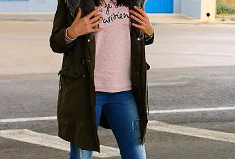 He optado por un look cómodo, ya que íbamos a andar y ha estar un ratito de pie mientras esperábamos a que empezara y mientras la hacían también. Así que nada mejor que un look sport, donde estreno sudadera y jeans. La sudadera tiene un color muy dulce, el famoso rosa quartz que tanto esta de moda, y los jeans son ideales. Los combiné con mis Converse blancas y parka en color militar, que combina a la perfección con el resto del look.Que tengáis una semana genial!! Yo esta la tengo atope, creo que me van a faltar horas!!!Besos!!
