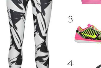 1.Mallas |2. Top negro | 3. Zapatillas Nike | 4.Bandas elásticas | 5. Mallas colores | 6. Top coral | 7. Zapatillas running