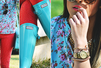 Ya ha llegado oficialmente la primavera y por ello os traigo un look colorido y como no puede ser menos con estampados florales. Algo especial de este look son las botas de agua...porque con la primavera llega Abril y ya sabéis...."En Abril aguas mil" por lo que me apetecía haceros este look para que veáis que también se puede ir monísima un día de lluvia, yo en este caso llevo mis botas HUNTER de MASXMENOSMARCAS donde podréis encontrarlas en varios colores y otras prendas y accesorios con grandes ofertas...si os gusta ahorrar dinero en vuestras compras MASXMENOSMARCAS es vuestra web, sin duda!!Ya sabéis que me encantan las prendas especiales...y este pantalón de DELBAN BARCELONA es una de ellas...con un estampado barroco y un color vibrante, que quedan absolutamente perfectos puestos. Llevo camisa de flores de MARAYA MODA...ya sabéis..una de mis webs por excelencia para comprar ropa LOW COST pero de buena calidad. Por último y no menos importante los complementos que llevo; mi collar de INDARAS ACCESSORIES que le da al look ese toque de elegancia que siempre viene bien. Gafas CARRERA y pulsera GUESS de ANDORRAQSHOP...que podéis ganar en el sorteo de facebook AQUÍ. ¿ Queréis ver más fotos del look de hoy ? Pues quedaros!!