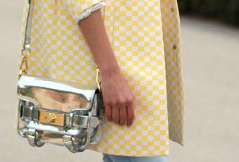 Cómo ya os decía ayer, me encantan los zapatos metálicos, y ayer estrené los míos. Tal y cómo pensaba por su precio, no son los zapatos más cómodos del mundo. Los combiné con un abrigo monísimo a cuadros blancos y amarillo, y una bolso también metálico.