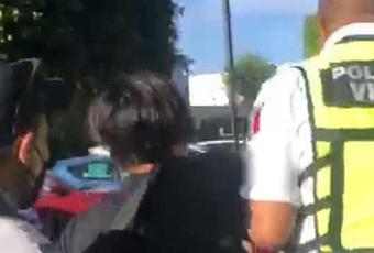 En un video que circula en redes sociales se puede apreciar a tres agentes que realizan la detención mientras otro grupo de ciudadanos que no estuvo presente en el incidente que dio origen a la denuncia ciudadana exigen la liberación del adolescente. El joven, incluso (se puede apreciar) se protege con la patineta y asegura ser inocente.
