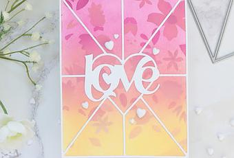 Para hacer el fondo, he usado parte del set "Floral Garden", que consiste en un sello y dos stencils. Solo he usado los stencils :). También he usado dos nuevos troqueles: "Fancy Love" y "Heart Panes Cover Plate".