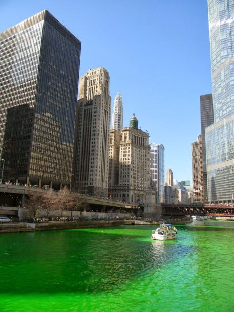 Este día se celebra no sólo por los Irlandeses sino también por muchas más personas ya que se ha generalizado.En Estados Unidos hay ciudades como Boston, Chicago, New York donde existen profundas raíces irlandesas y este día se celebra de manera espectacular tiñendo sus calles de verde y en el caso de Chicago hasta tiñendo su río(con tintes naturales que no dañan ni contaminan el agua) os dejo con la imagen aquí abajo.