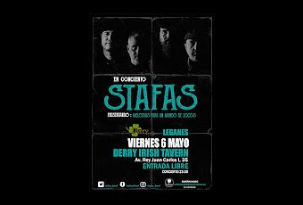 Stafas no esperan en Leganés, presentando el que es su nuevo disco que tiene por nombre Melodías para un mundo de locos. La banda sigue con su rock and roll en pleno estilo del rock and roll clásicos. Un show con entrada gratuita con mucho que disfrutar.