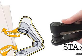 Stampler es un singular gadget de oficina que combina una grapadora con un sello. Al grapar las hojas se unen formando una cara con una sonrisa al estilo Mona Lisa.