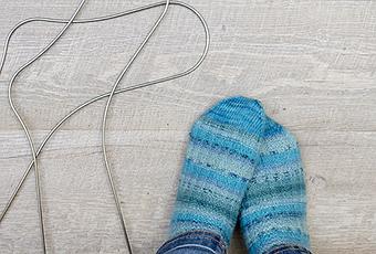 En un post anterior os conté que había tenido algunos problemillas tejiendo los calcetines y que al final decidí mezclar dos lanas distintas en el patrón. Aunque a primera vista las dos madejas eran muy diferentes, el contraste apenas es visible (o yo tengo la vista muy mal). El elástico, talón y puntera están tejidos con una Malabrigo Sock y el resto con Fabel de DROPS.