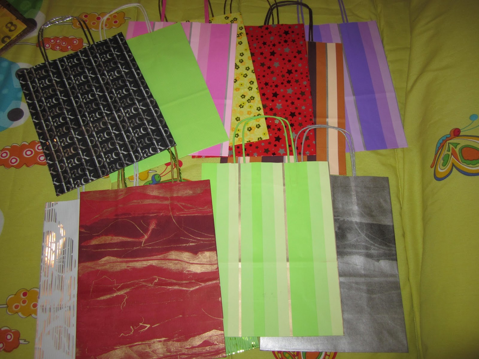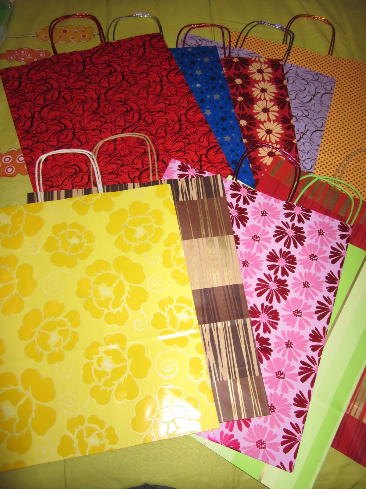 Dentro de la caja también me llegó un montón de bolsas de regalo, todas con tu tarjeta a juego colgada de la cinta,