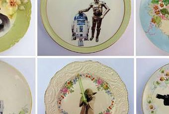 Vienen de la mano de Angela Rossi, una artista y diseñadora de Los Ángeles, que decidió cruzar ese umbral y romper con las clásicas imágenes en las vajillas. Sus obras se pueden encontrar en el Museo de Arte Moderno y Contemporáneo de Arte en Trentino, Italia, en Australia, y en varias galerías de Estados Unidos. Me imagino toda una pared decorada con los platos de Darth Vader, Chewbacca y toda la flota imperial.