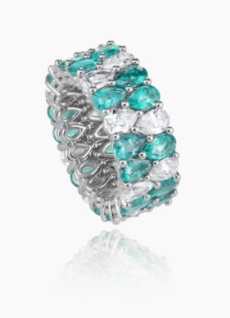 Además, un anillo de oro blanco de 1ct engastado con Esmeraldas talla pera (4ct) y diamantes talla pera (3ct) y un anillo fr oro blanco de 18 ct engastado con un diamante talla marquesa de 4ct y talla brillante.