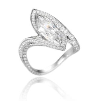 Además, un anillo de oro blanco de 1ct engastado con Esmeraldas talla pera (4ct) y diamantes talla pera (3ct) y un anillo fr oro blanco de 18 ct engastado con un diamante talla marquesa de 4ct y talla brillante.