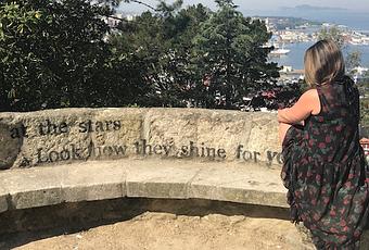 Hace unos días, cuando iba paseando por el castro en Vigo, me encontré con este maravilloso mirador y esta frase tan chula y me dije "Aquí me voy a hacer las fotos hoy" y dicho y hecho, así fue como elegí ese lugar.
