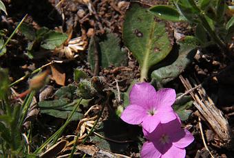 ACANTHACEAEHierba perenne de 2 a 10 cm, nativa de las Américas, desde el sur de los Estados Unidos hasta Argentina y Chile. En la provincia crece en suelos rocosos de las sierras del sur o e algunos sitios perturbados.Es acaule, con rizomas notorios y raíces fibrosas.Hojas con pecíolos de 0,5 a 2,5 cm de largo, láminas ovadas a oblongas, de 1,5 a 5,5 por 0,8 a 2,8 cm., obtusas o redondeadas en el ápice, margen entero o ligeramente crenado. Venación prominente en el envés. Flores en espigas densas, sésiles o pedunculadas. Brácteas lanceoladas u oblongo-lanceoladas. Flor de corola rosada, cáliz con lóbulo angosto, de 6 a 7 mm de largo.El fruto es una cápsula oblonga de 7 a 9 mm, con semillas ovadas con pelos blancos.