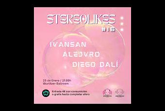 Stereolikes vuelve a Wurlitzer Ballroom con tres propuestas en directo que no hay que perder de vista.Stereolikes vuelve con tres propuestas, Ivansan, Alejvro y Diego Dalí en Wurlitzer Ballroom el 25/1.En esta nueva fecha dentro de las sesiones Stereolikes encontraremos a tres propuestas muy interesantes y de esencia emergente. Un evento con Ivansan, Alejvro y Diego Dalí son las tres propuestas musicales que estarán en Wurlitzer este 25/1 por todo lo alto.