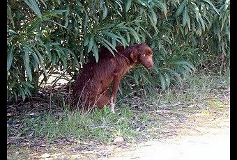 Mucho me temo, que ya habrán dado aviso para que lo recoja la perrera, porque está en una zona de chalets en las afueras de este tétrico poblacho y aqui la gente ve un animalito así y lo quieren fuera de su vista. Además la carretera está muy cerca de donde STEVE está.
