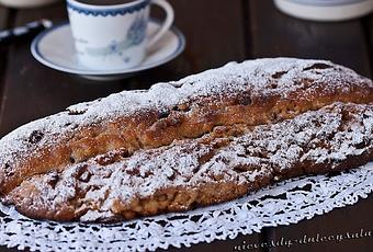 El "Chiststollen" es un pan dulce típico de navidad que por su forma, recuerda al Niño Jesús recién nacido y envuelto en pañales. Por ello se cubre con el blanco azúcar. Es un pan de levadura, que generalmente lleva una proporción de mazapán y frutos secos. Lo más habitual es dejarlo reposar durante 3 semanas en un lugar fresco, para que los frutos suelten todo su sabor y aroma, de modo que si se quiere hacer un regalo en estas fechas y que no resulte demasiado perecedero, sólo hay que envolver este riquísimo bollo con un bonito papel de regalo.