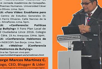 Jorge Marcos Martínez Campoblanco, es uno de los voceros y precursores en la acción de difusión de las regulaciones impuestas por el Ministerio de Educación del Perú y la Ley 27719 que promueve la convivencia sin violencia en las instituciones educativas.