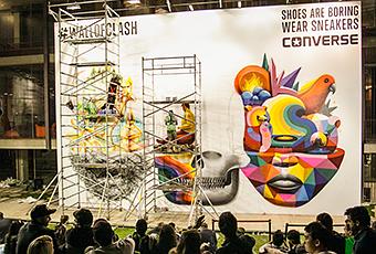 El pasado martes 18 de marzo, el patio del madrileño colegio Oficial de Arquitectos de Madrid COAM fue testigo de una verdadera experiencia de creatividad colectiva: el gran mural #WallOfClash, con el que la conocida marca Converse, Inc. anuncia el lanzamiento de la nueva colección primavera-verano 2014.
