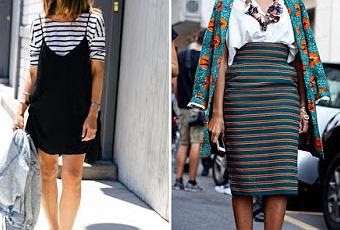 Faldas y vestidos sin medias son perfectos en el veroño, eso sí, acompañados de camiseta ligera de manga larga o de un kimono