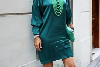 El éxito del look son los complementos, especialmente el collar de cuentas en un verde más pálido, recuerdo de un viaje a Filipinas. El bolsito de mano, a tono con el collar, es de Bimba & Lola. The success of the outfit has to do with the accessories, especially the green necklace from Philippines. The handbag is from Bimba & Lola.