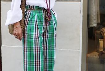 En esta ocasión fue Mª Jesús, quien nos enamoró: blusa blanca de Malena Birger, pantalones anchos Sportmax de Zsa Zsa Zsú Reestreno, bolso Loewe, gafas de sol Armani y un collar largo comprado en Mirepoi, Francia.