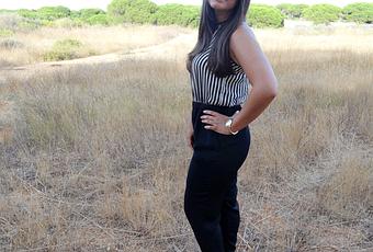 You know, I won't be by Spain to this year, because I have come to London. But calm, I leave the blog in good hands in Spain!!!! My sister Sara (I take to show in this post) will be in charge of representing me in all the events and parties related to fashion, beauty and lifestyle in Madrid. If you don't want to miss any details, you can follow via twitter at @GossipsFashion2. For this special occasion, Sara has chosen a overall black and white stripes....