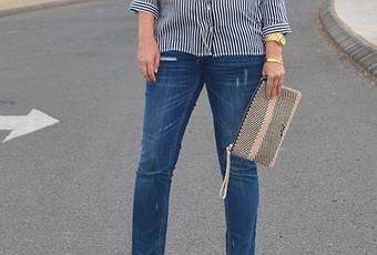 To finish the week a new outfit with an striped shirt and jeans, a simple look, comfy with some colour, a mix that I love.