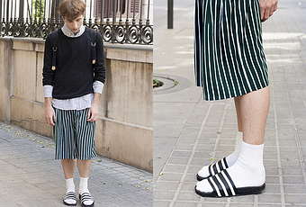 Overdose! I love prints and I'm not afraid to combining it with different colors and sizes. Like today's look in which stripes are the stars alongside the Adilette slides combined with socks. Recently out of my gym bag I decided to take out to wear at street. Maybe you're thinking Bad taste? But, how comfy it are...