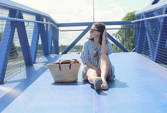 Los vestidos navy se han convertido año tras año en un indispensable en mi armario, una tendencia que todos los veranos vuelve y que tanto juego nos da a la hora de crear estilismos. En un azul celeste con crema de fondo y el detalle de los pompones a modo de lazada hacen diferente y divertido a este vestido, junto con las mangas abullonadas, otra de las tendencias que podemos ver este verano.