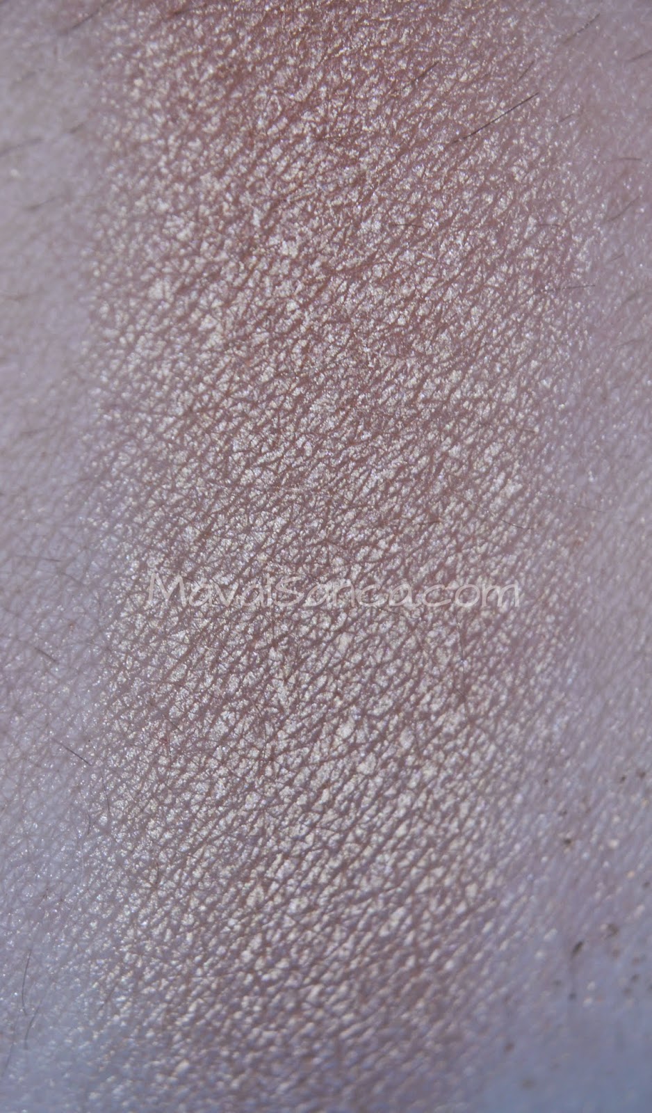 Es un color rosa claro que tornasola a dorado de acabado metalizado.Me recuerda mucho al conocido Paint Pot Rubenesque de MAC siendo un poco más claro que éste y en formato polvo.