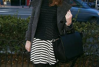 Aquí las rayas aparecen en la falda, que en realidad es un vestido del verano pasado al que he decidido dar una nueva vida. Muchos vestidos sin mangas los podemos usar también en invierno, simplemente añadiéndoles un jersey o una chaqueta^^.So, here you are the striped skirt which is, actually, a summer dress that I decided to reuse in winter. We can use sleeveless summer dresses just adding a sweater or a jacket^^.