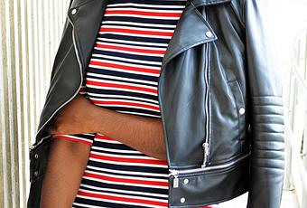 Hoy os dejo con un outfit bastante sencillo, lo único que al ser el vestido de rayas y llevar gafas plateadas parece otra cosa. Me lo puse tal cual para ir a la universidad la semana pasada. En cuanto a la biker, me la compré hace un par de meses en Zara y me gusto mucho que se pudiese hacer más corta, aunque yo sinceramente no creo que vaya a recurrir a ello.