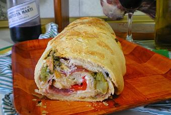 Estareís pensando que este plato es algo parecido a los Calzones.Casi acertaís.Tienen similitudes en los ingredientes pero el Stromboli no es una empanada rellena como el Calzone, sino más bien se parece a un burrito gigante en su forma final y se sirve cortándolo en láminas.El relleno del Stromboli siempre queda sujeto al criterio de la persona que lo prepare, pero siempre alternándolos y dejando al queso como protagonista.