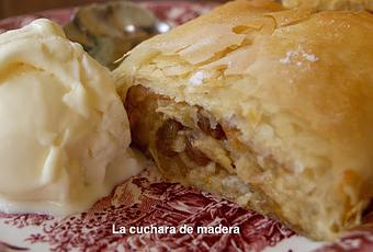 Una tarta sencilla que anteriormente había realizado con masa de hojaldre, como podrán ver en el blog en la entrada de tarta de manzana, una de mis primeras recetas cuando empezaba con el blog. En casa a algunos les gusta más esta, con masa filo y a otros la de hojaldre.... cual te gusta más a ti?Ingredientes: