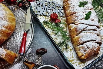 Hoy vamos a preparar un postre tradicional de la cocina Austriaca y convertirlo en un dulce para servir en la mesa estas navidades.El strudel de navidad es el mismo strudel de manzanas que todos conoces y hemos probado en alguna ocasión. La receta original se hace con pasta filo y también se puede hacer con masa de hojaldre.Si queremos que se quede verdaderamente delicioso es mejor hacerlo con una masa hecha por nosotros, la diferencia es brutalmente buena.Strudels de navidad
