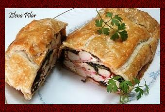 PREPARACIÓN- Descongelar la lámina de hojaldre y los palitos de surimi