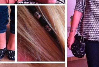 Bailarinas y bolso de tachuelas,de donde??También de Zara,de otras temporadas.