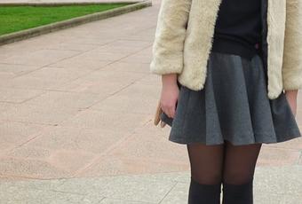 Hablando ya del outfit, pues esta falda voy a atreverme a decir que es la favorita de Ain y normal porque le queda genial jajaja y eso que a ella el vuelo no le acaba de convencer.. Pero no todo podía ser perfecto, no? Luego el abrigo, que os voy a decir si es mío jajaja me encanta! Es mi prenda favorita del invierno, suave, calentito y muy de mi rollo (no me preguntéis cual es que no lo sé jajaja) Las calzas con unos botines, para mí, es una combinación que siempre queda bien y da un toque un poco diferente, no todo va a ser botines con jeans o medias.