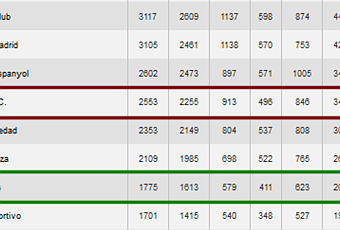 A nosotros solo nos valen las estadísticas proporcionadas por un ente como la Liga de Fútbol Profesional que se actualizan jornada a jornada. Por lo tanto no son datos del ayer, son de hoy mismo, es decir, el presente. Curiosamente en estas estadísticas no aparecen las catetadas como a la que nos hemos referido, solo los datos serios que comparan el fútbol español en su globalidad y en el tiempo hasta el mismísimo día de hoy.