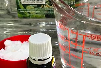- Mover hasta que el bicarbonato se disuelva y añadir las gotas de aceite esencial de lavanda.
