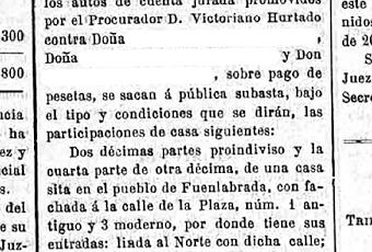 Este tipo de subastas, junto a las de terrenos, eran habituales durante el siglo XIX e inicios del XX ante la falta de liquidez sobre el pago de los impuestos. Nos ofrece una información detallada de cómo eran las viviendas y con qué propietarios lindaba.