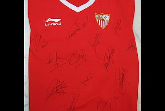 La camiseta del Sevilla Fútbol Club cuenta con las firmas de los siguientes jugadores de la temporada 2012/2013: 1) Andrés Palop, 9) Álvaro Negredo, 7) Jesús Navas, 2) Federico Fazio, 8) Gary Medel, 10) Diego Perotti, 23) Coke Andújar, 21) Alex Sandro Cicinho, 3) Fernando Navarro, 6) José Gómez Campaña, 20) Baba Diawara, 11) Ivan Rakitic, 14) Manu del Moral.