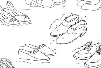 Actividad: Encierra en un círculo de color azul el subconjunto de zapatos de hombre; luego, en otro de rojo, el de mujer. Finalmente, coloréalos.