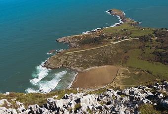 Aquí habita la única colonia de buitre leonado del litoral, y resulta impresionante verlos sobrevolando con el mar de fondo. También vi algunos cuervos. Desde arriba las vistas son impresionantes, desde Laredo, al fondo el monte Buciero y Santoña y la playa de San Julián de Liendo, más a la derecha la silueta de la ballena y la playa nudista de Sonabia y más allá la entrada de la playa de Oriñon y al fondo la costa vizcaína.